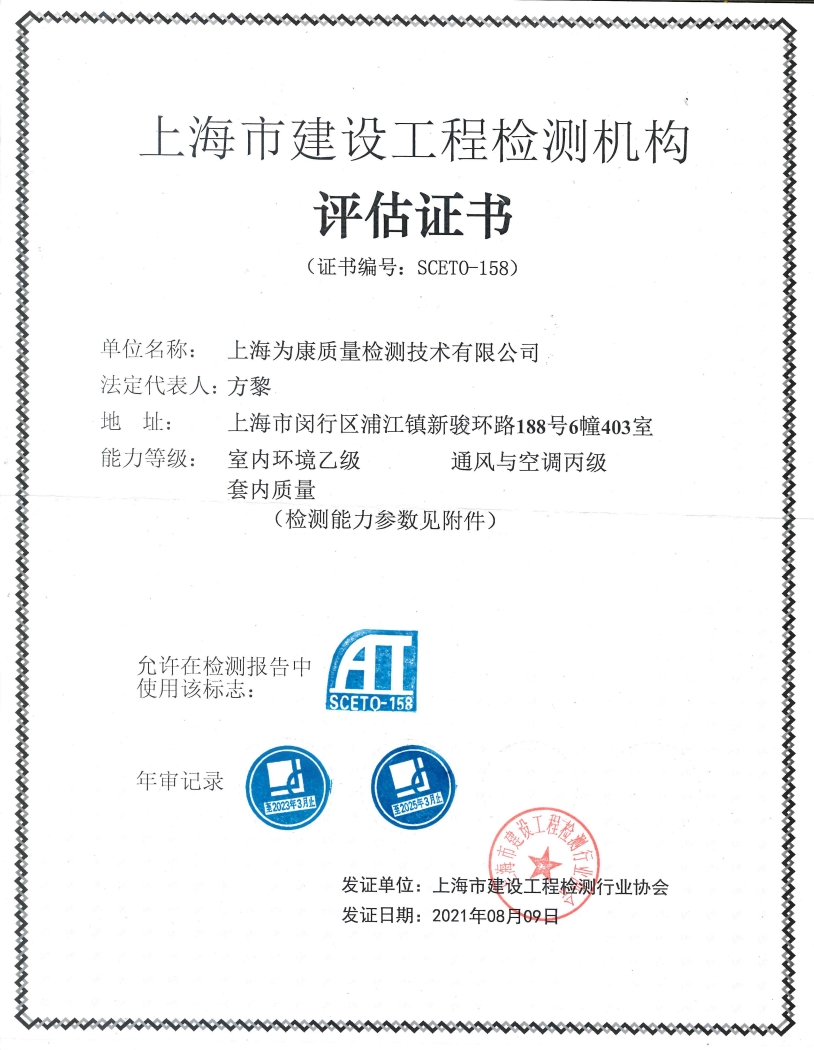 服務范圍:上海市新建、改建、擴建工程項目竣工驗收備案室內環(huán)境檢測、個人家庭新房裝修污染空氣檢測、學校、幼兒園等公共場所空氣檢測、精裝修房交房驗收室內空氣檢測、辦公室室內空氣污染檢測